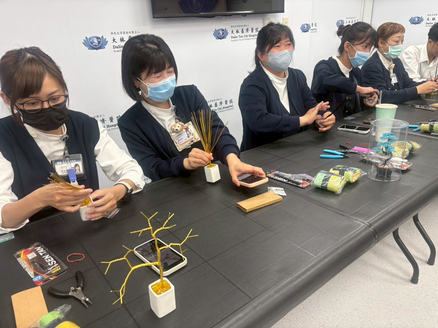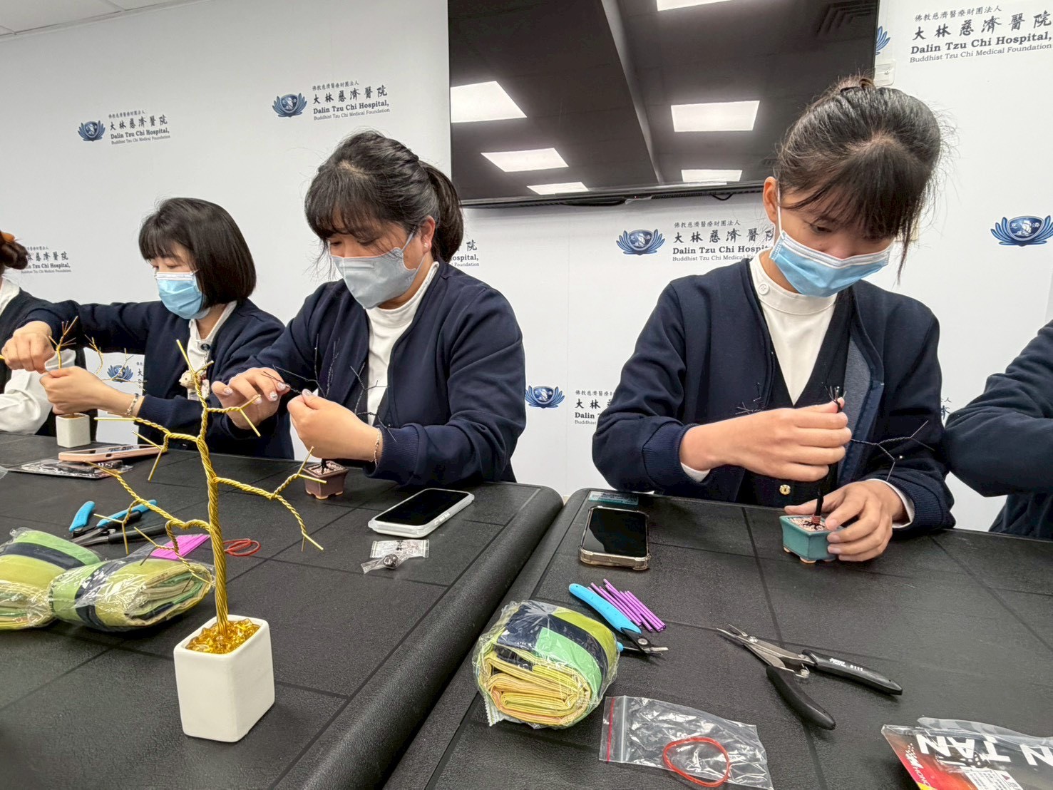 學員認真 製作樹枝